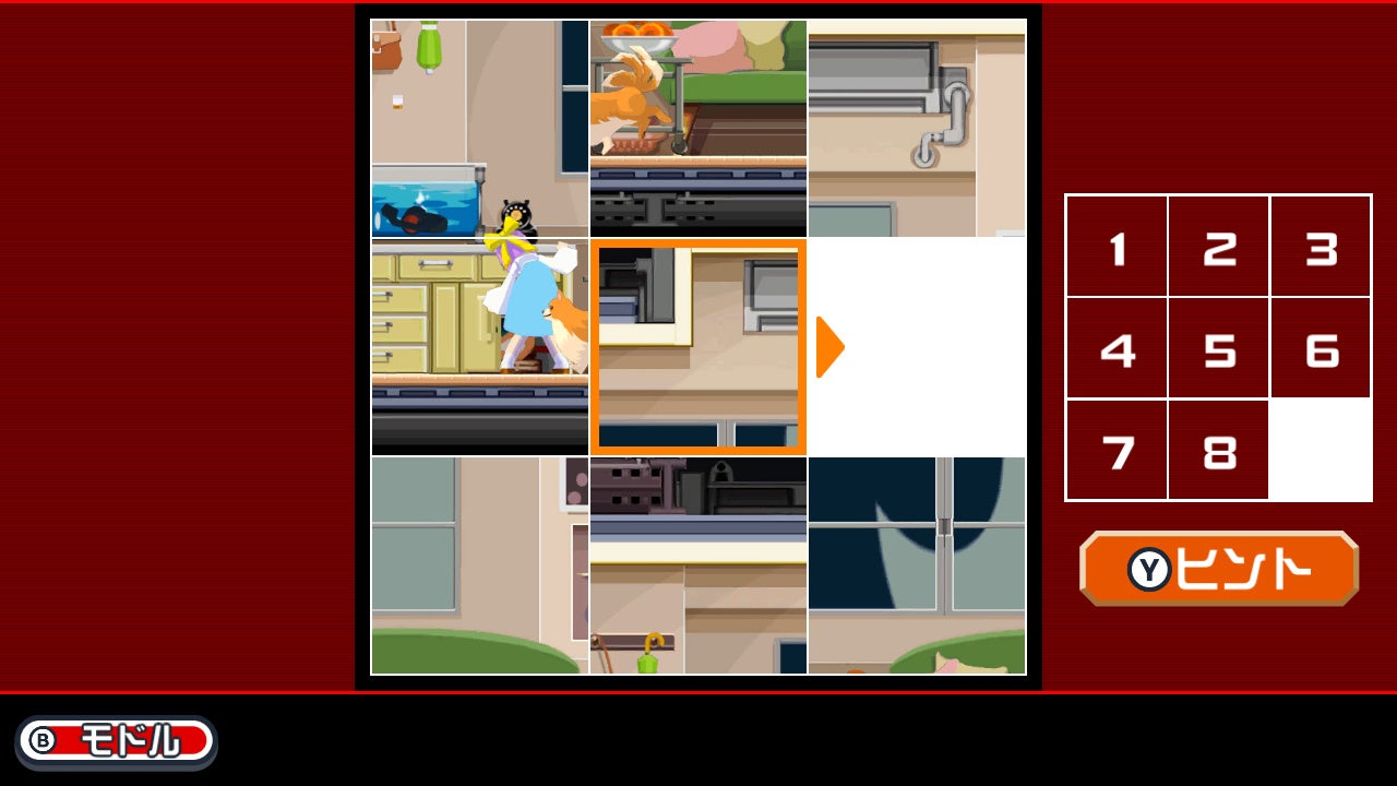 入れ替えパズルの「ゴーストパズル」を追加。映像のように絵柄が動くピースを移動させて、本作のワンシーンを再現するパズルを完成させよう。