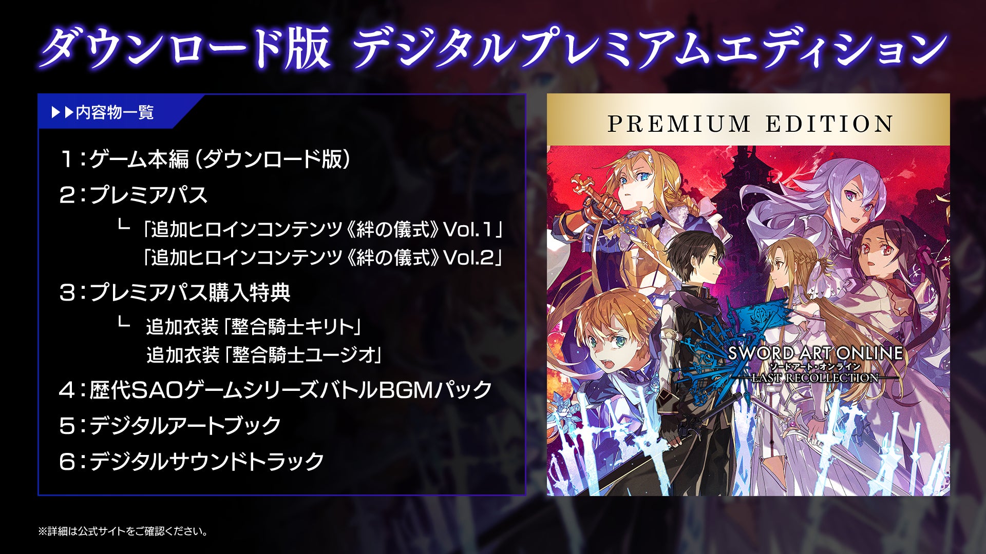 ※詳細は公式サイトのDLCページをご覧ください:https://lr.sao-game.jp/dlc/premierepass.php