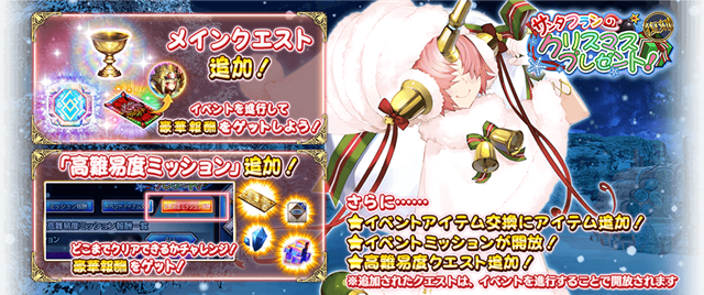 期間限定イベント「復刻:サンタフランのクリスマスプレゼント!」にて、新たなメインクエスト&イベントミッション追加の詳細は、『FGO Arcade』公式サイトのお知らせで確認できる。
