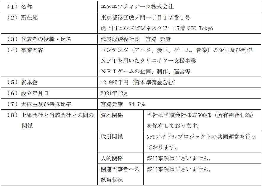 エディアとしては、エヌエフティアーツとの合意の見通しが立った段階で報告したいと考えていたが、現時点では合意の目途も立っておらず、一方で現在プロジェクトはエヌエフティアーツが独自に運営を行っているという状況でもあることから、エディアはエヌエフティアーツとの資本業務提携契約を解消することを決定した。これにより、エディアはプロジェクトからも離脱することとなる。