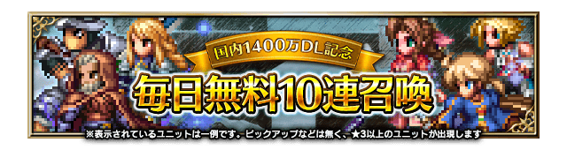 「国内1400万DL記念 毎⽇無料10連召喚」