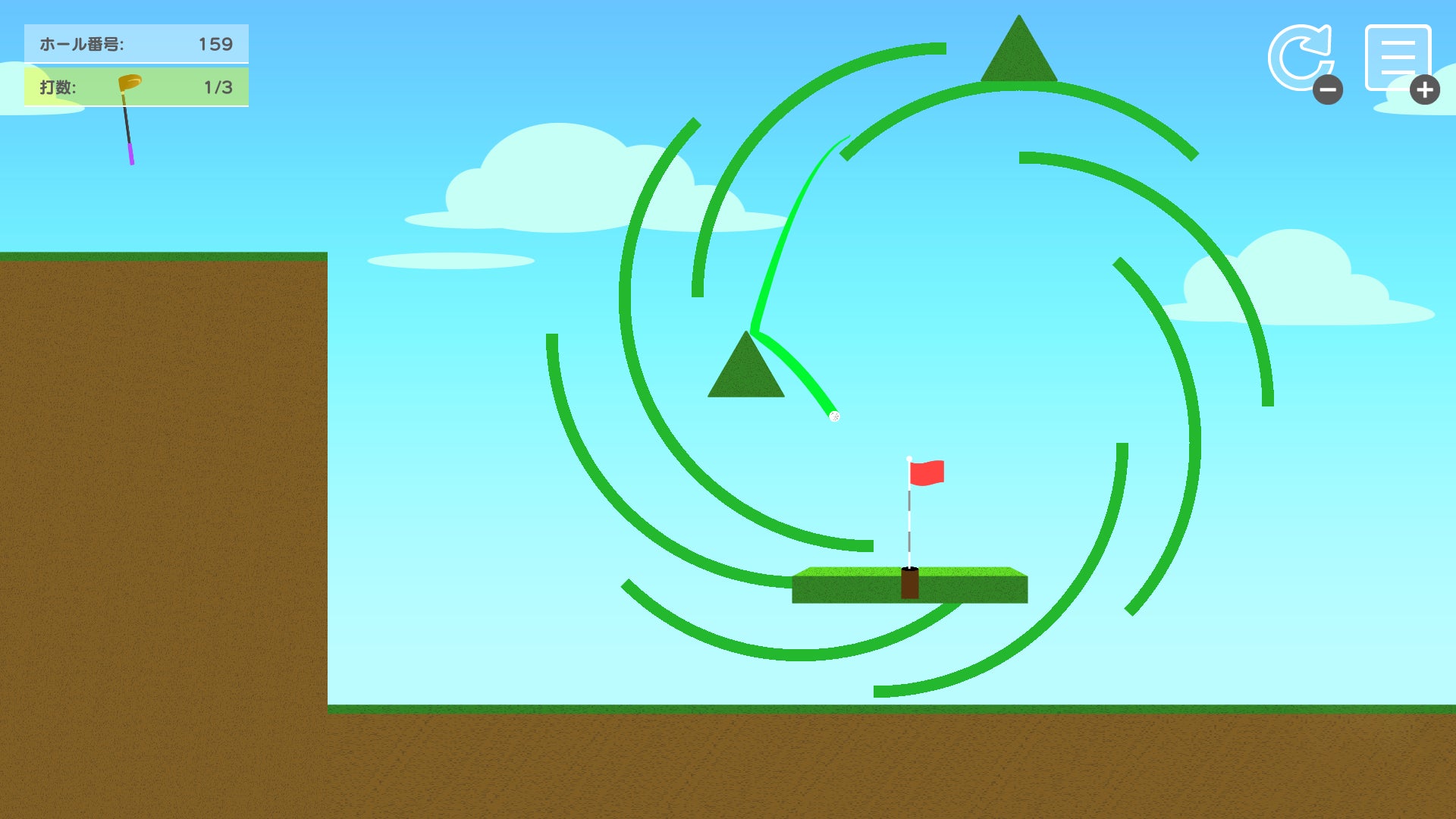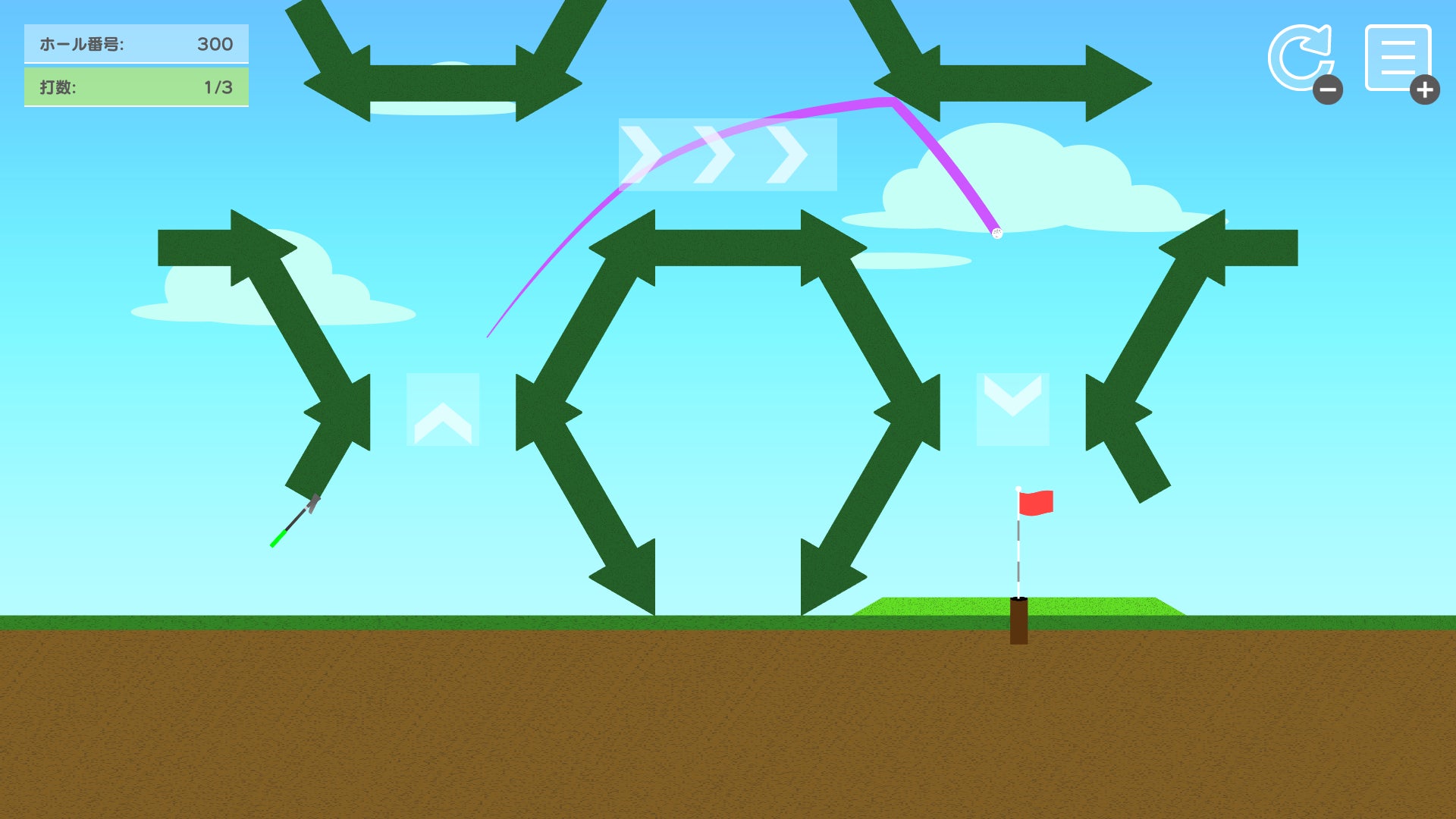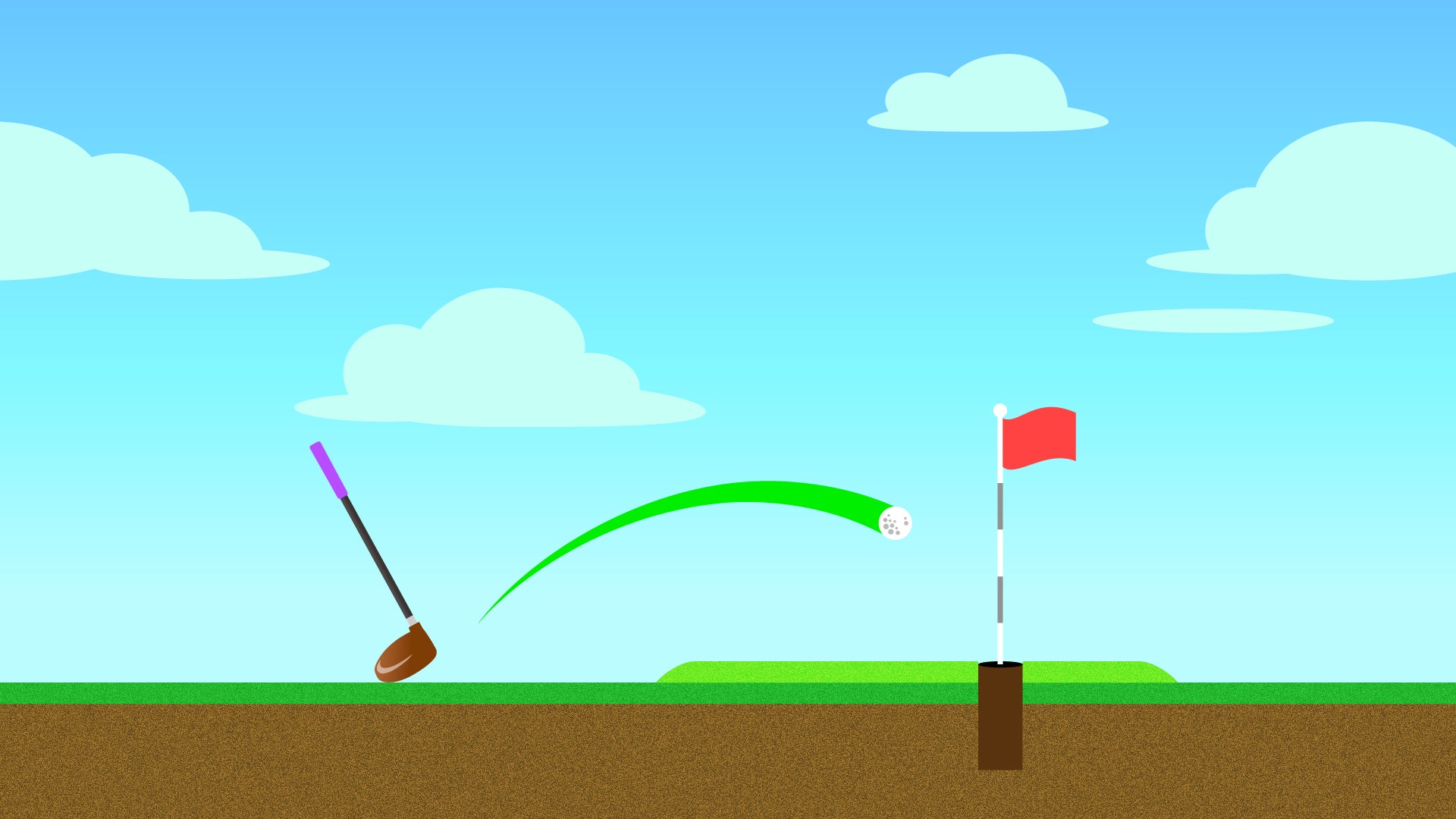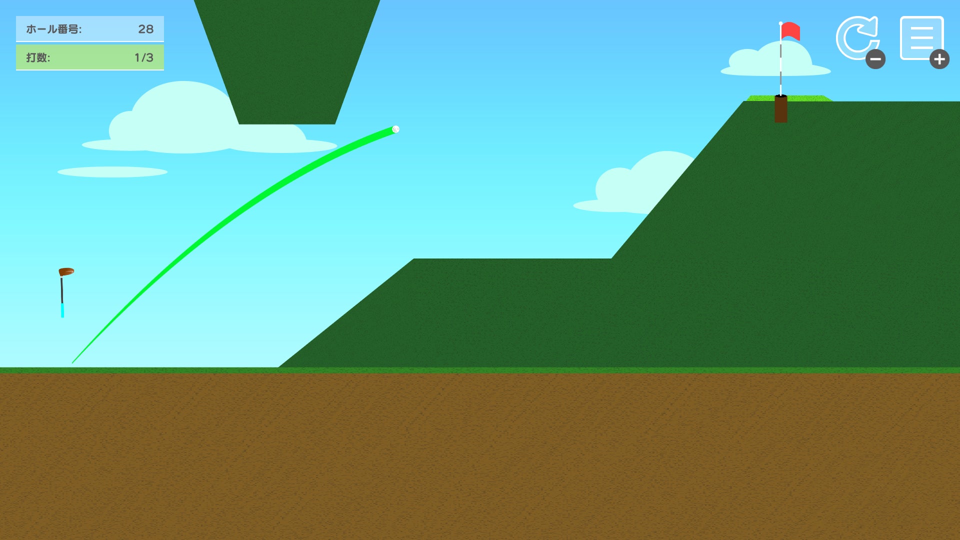 『サイドビューゴルフ』は、5種類のクラブを使い分け、力加減だけでカップインを狙うシンプルな横視点のゴルフゲーム。