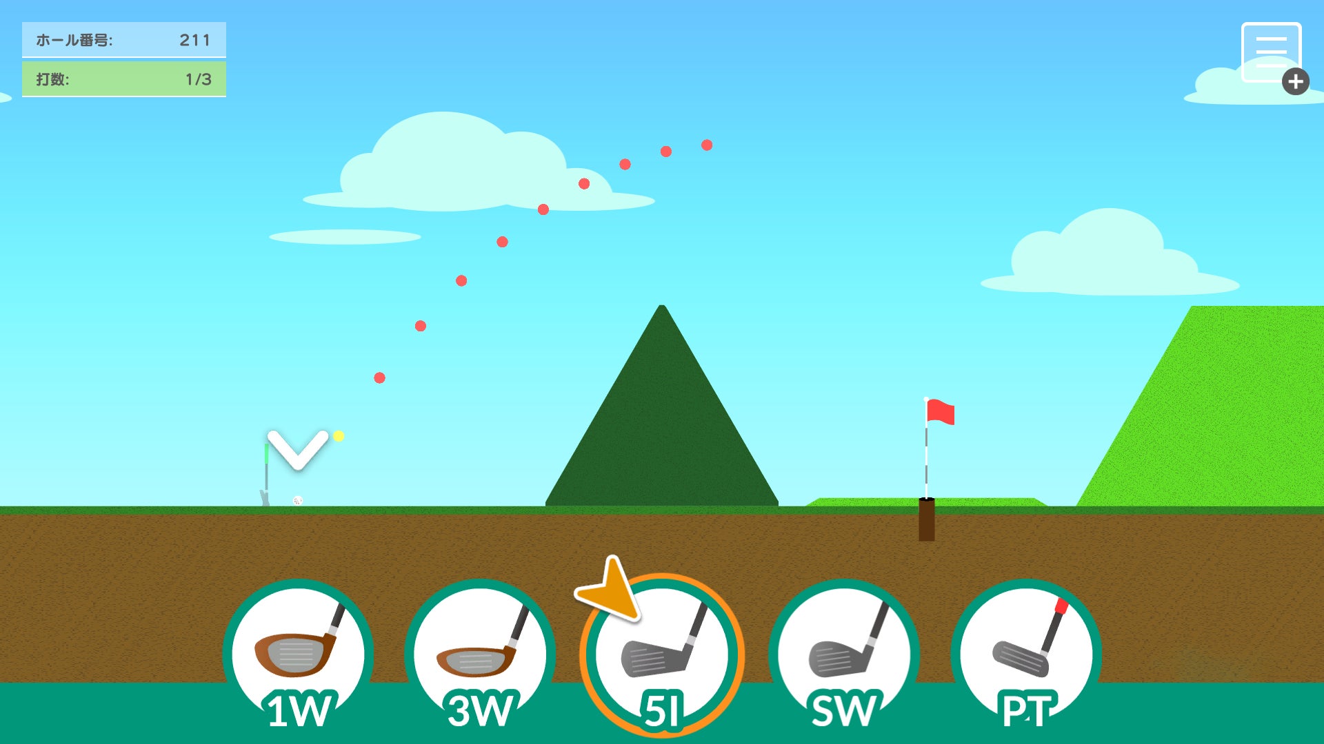 飛距離や打ち出し角度の異なるクラブの中から、どのクラブを使うかがホール攻略のカギとなる。