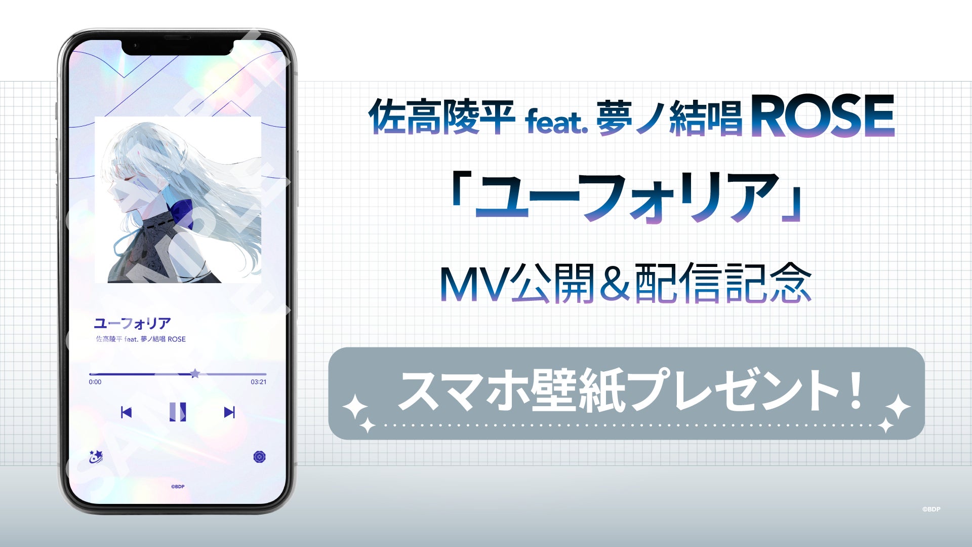 佐高陵平 feat. 夢ノ結唱 ROSE「ユーフォリア」のMV公開&各音楽配信サービスでの配信を記念して、スマホ壁紙を配布しています。