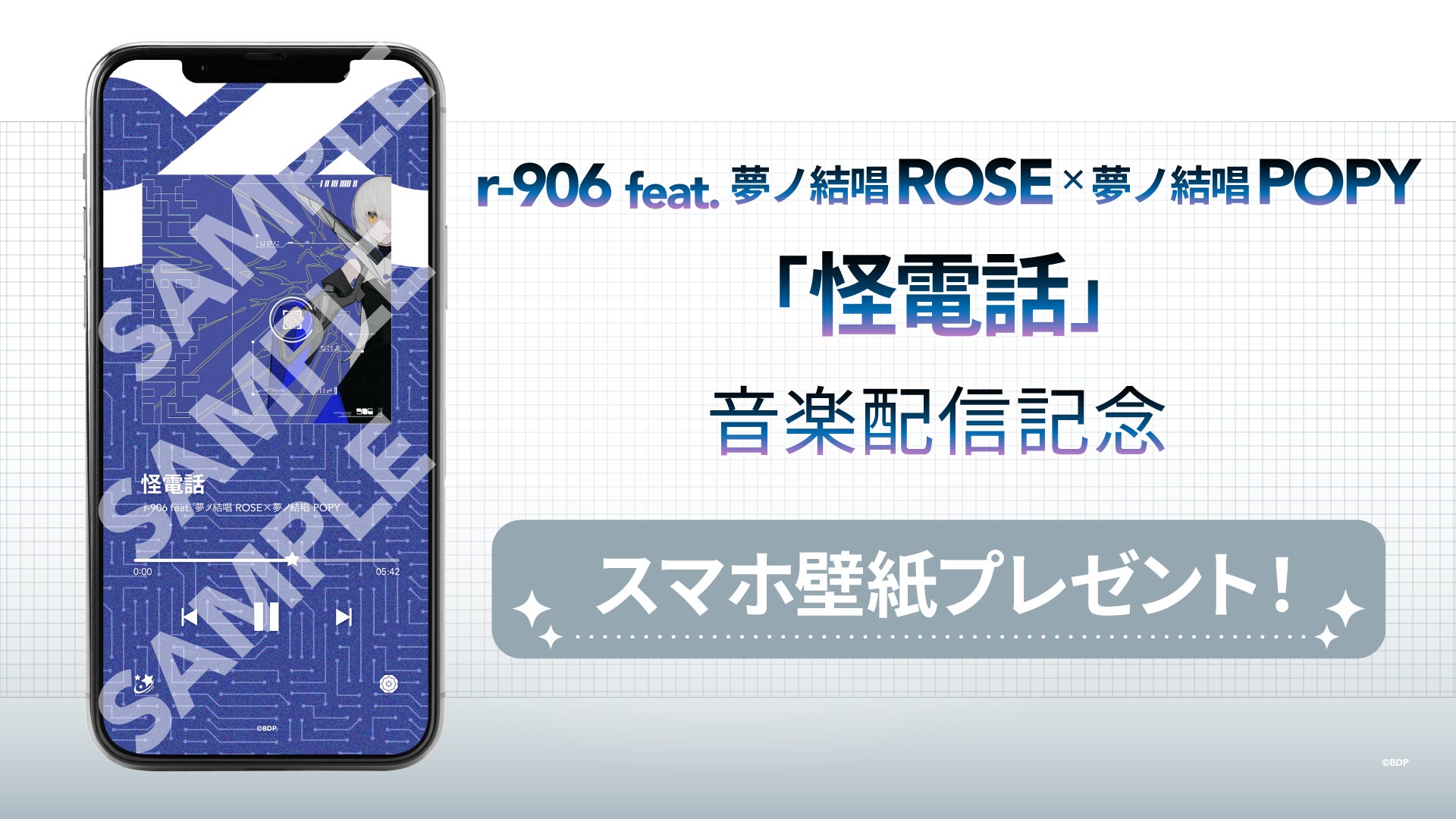 r-906 feat. 夢ノ結唱 ROSE×夢ノ結唱 POPY「怪電話」の各音楽配信サービスでの配信を記念して、スマホ壁紙を配布しています。