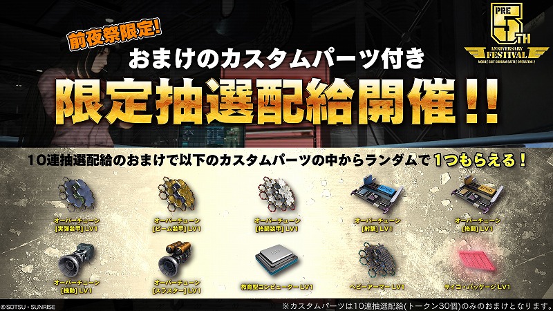 『前夜祭限定!カスタムパーツオマケつき限定抽選配給』開催!