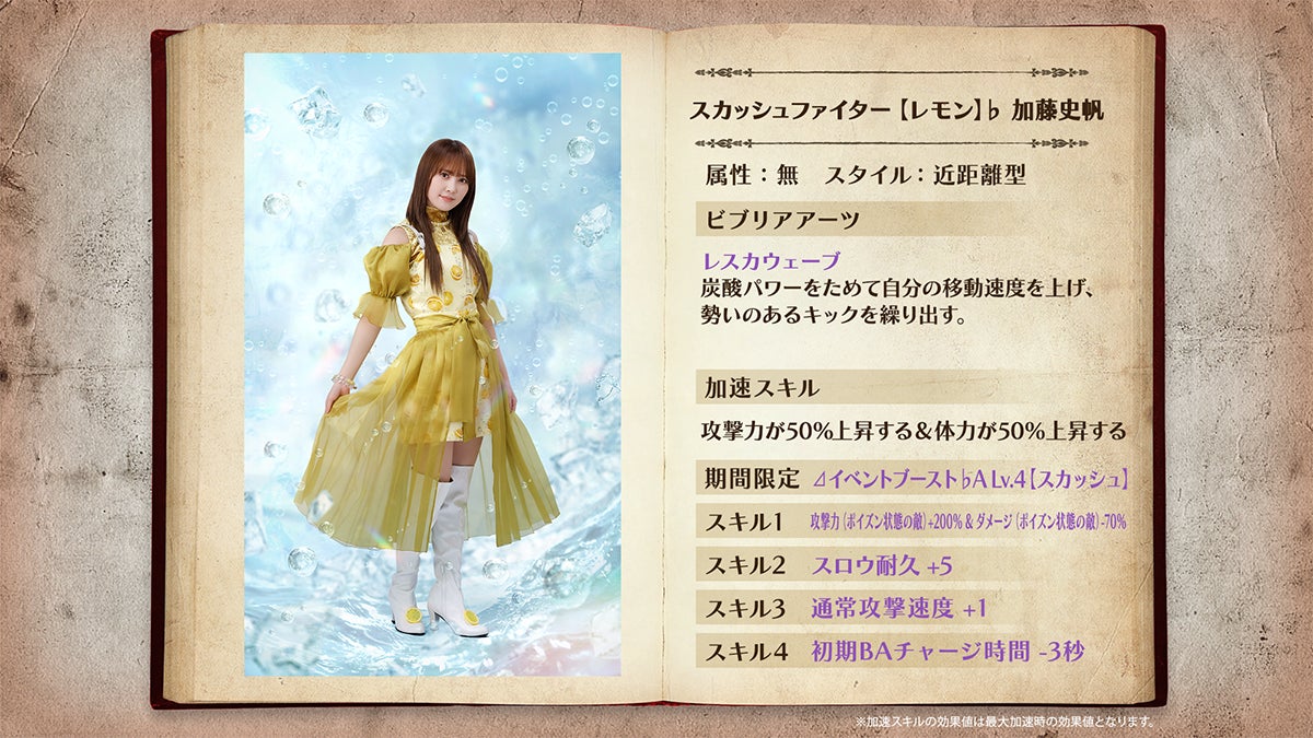 今回のイベントでは、メンバーカード「★4 スカッシュファイター【レモン】♭ 加藤史帆」と「★4 スカッシュファイター【レモン】♭ 佐々木久美」が報酬で獲得できる。
