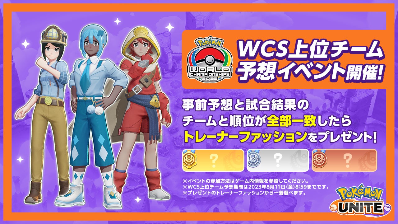 「ポケモンワールドチャンピオンシップ(WCS ) 2023」の『ポケモンユナイト』部門の開催を記念して、WCS上位チームを予想するイベントを開催する。