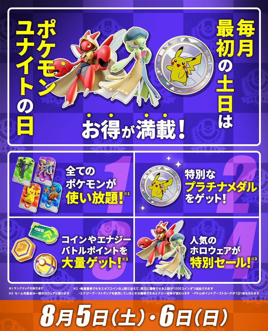 8.8月の「ポケモンユナイトの日」は、8月5日・6日に開催!