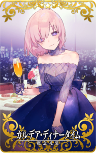 7月26日AM7:00より、「マナプリズムを交換」に記念概念礼装「★5(SSR)カルデア・ディナータイム」を期間限定で追加する。ノーマルカードに加えて、Fatalカードの記念概念礼装が交換可能。さらに、ノーマルカードの「カルデア・ディナータイム」は最大5枚交換できるが、そのうち1枚のみ、通常の必要交換数よりも少ない必要交換数でお得に交換できる。