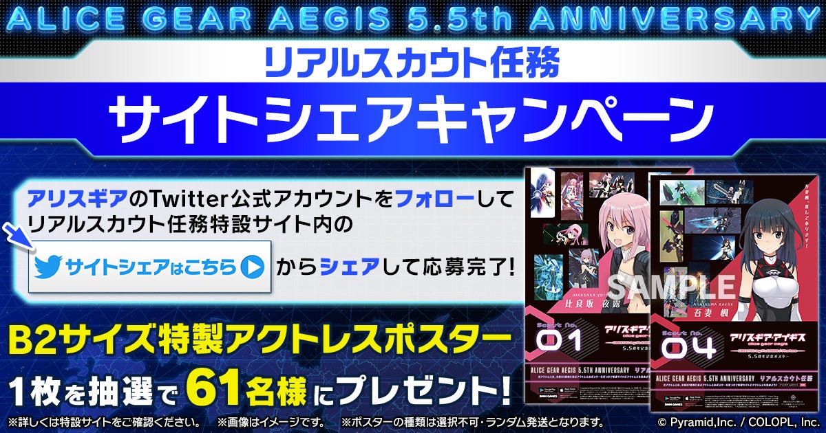 7月24日(月)より『アリス・ギア・アイギス』5.5周年を記念して「リアルスカウト任務」を開催します。