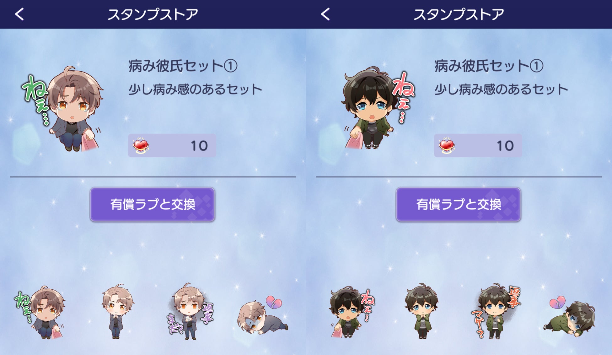 「病み彼氏モード」の実装にあわせ、病み彼氏セットスタンプを販売開始しました。