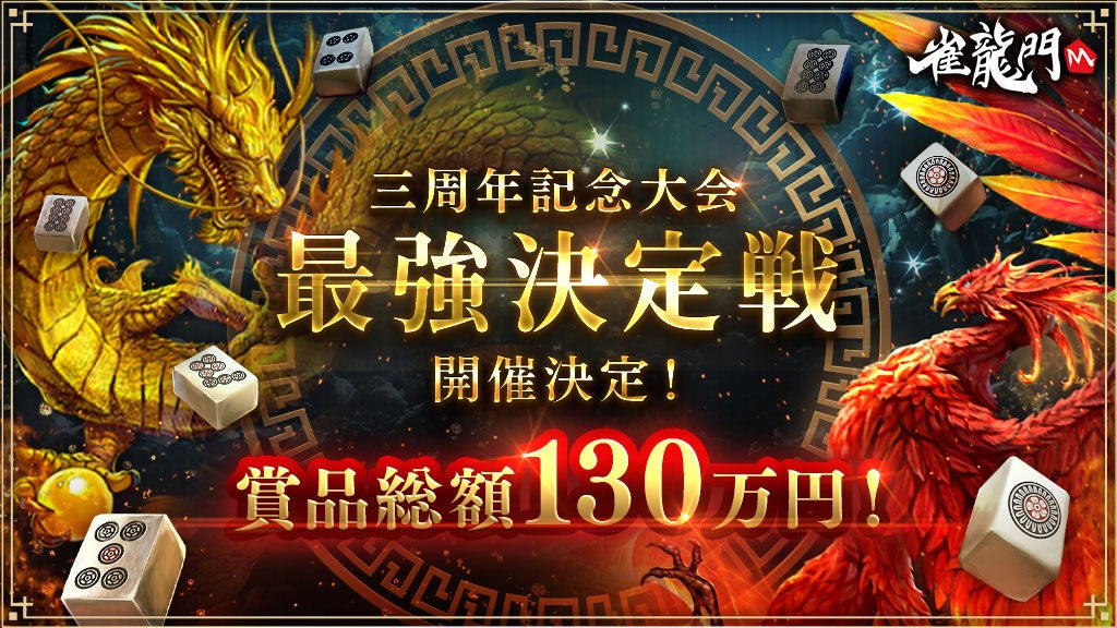 エヌ・シー・ジャパンは、スマートフォン向け超美麗本格3D麻雀アプリ『雀龍門M』にて、本日7月26日(水)より、イベント「雀龍門M3周年記念雀龍門フェスティバル!!」を開催する。
