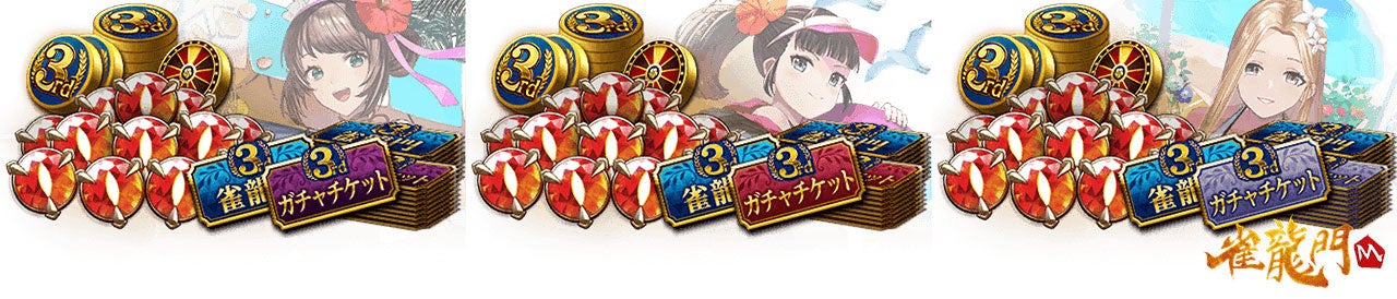3周年雀龍門チケット10枚パック(壱)、3周年雀龍門チケット10枚パック(弐)、3周年雀龍門チケット10枚パック(参)