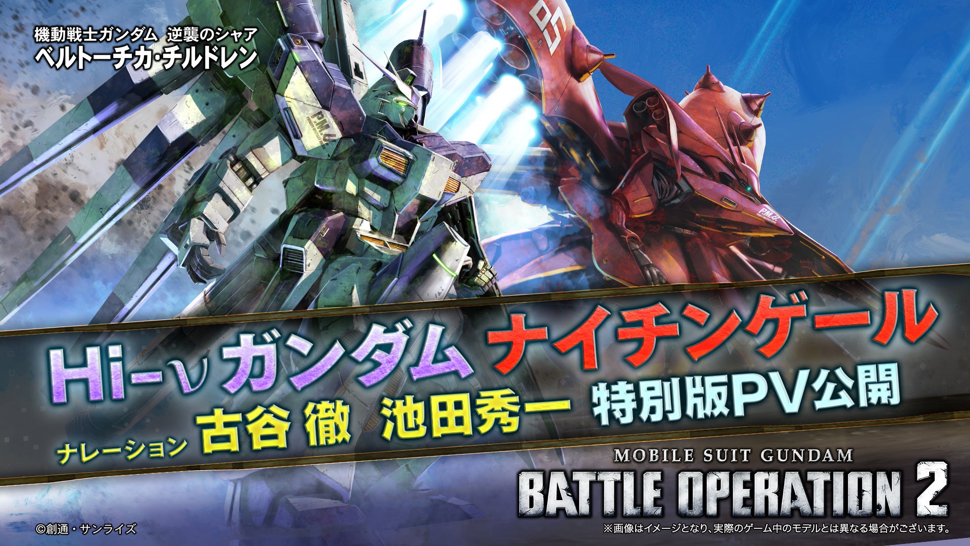 アムロ・レイ役の古谷徹さんとシャア・アズナブル役の池田秀一さんがナレーションを務めた、「Hi-νガンダム」と「ナイチンゲール」の魅力を存分にお伝えする特別な新機体参戦PVをYouTubeにて公開中!更には楽曲「MAIN TITLE」が本映像の世界観をより一層引き立てます。