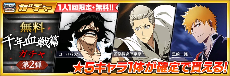 ★5の千年血戦篇キャラクター1体が必ず手に入る、お一人様一回限りの特別なガチャが登場!