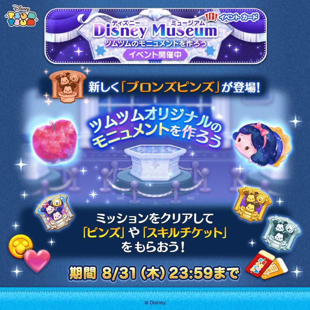8月3日(木)からは、新イベント「Disney Museum」を開催。このイベントは、ミッションをクリアし、パーツを集めてモニュメントを完成させるイベントとなる。完成させたモニュメントの数に応じて、ピンズを獲得できる。また、「Disney100 ミッキー&ドナルド」「Disney100 白雪姫」「Disney100 ウッディ」ほか、今月の新ツムを使うとキャラクターボーナスが発生し、有利にミッションを進めることができる。