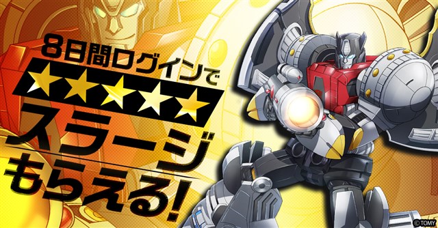 ゲーム開始から8日間、ゲームにログインするだけで星5オートボット「スラージ」や様々なアイテムを獲得できるイベントを開催する。