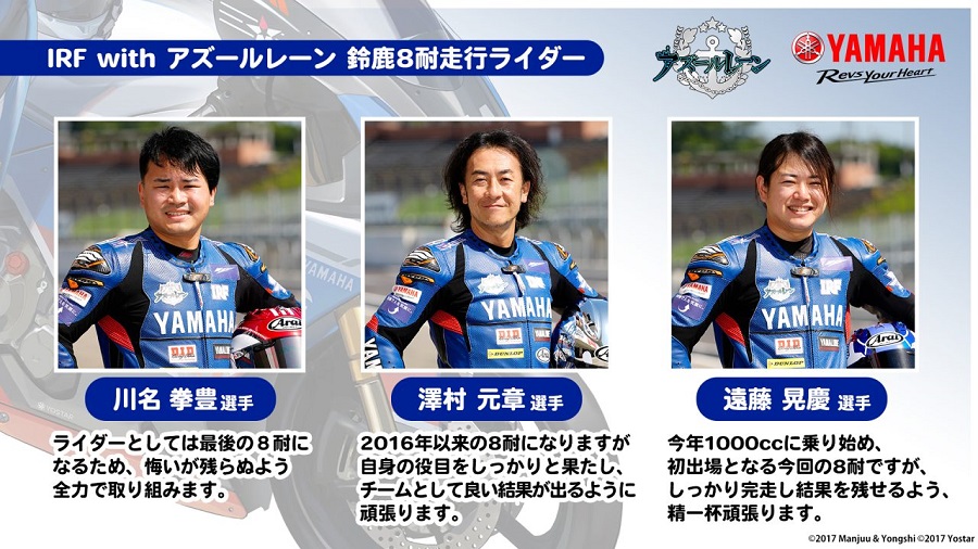■「IRF with アズールレーン」鈴鹿 8 耐走行ライダー紹介!