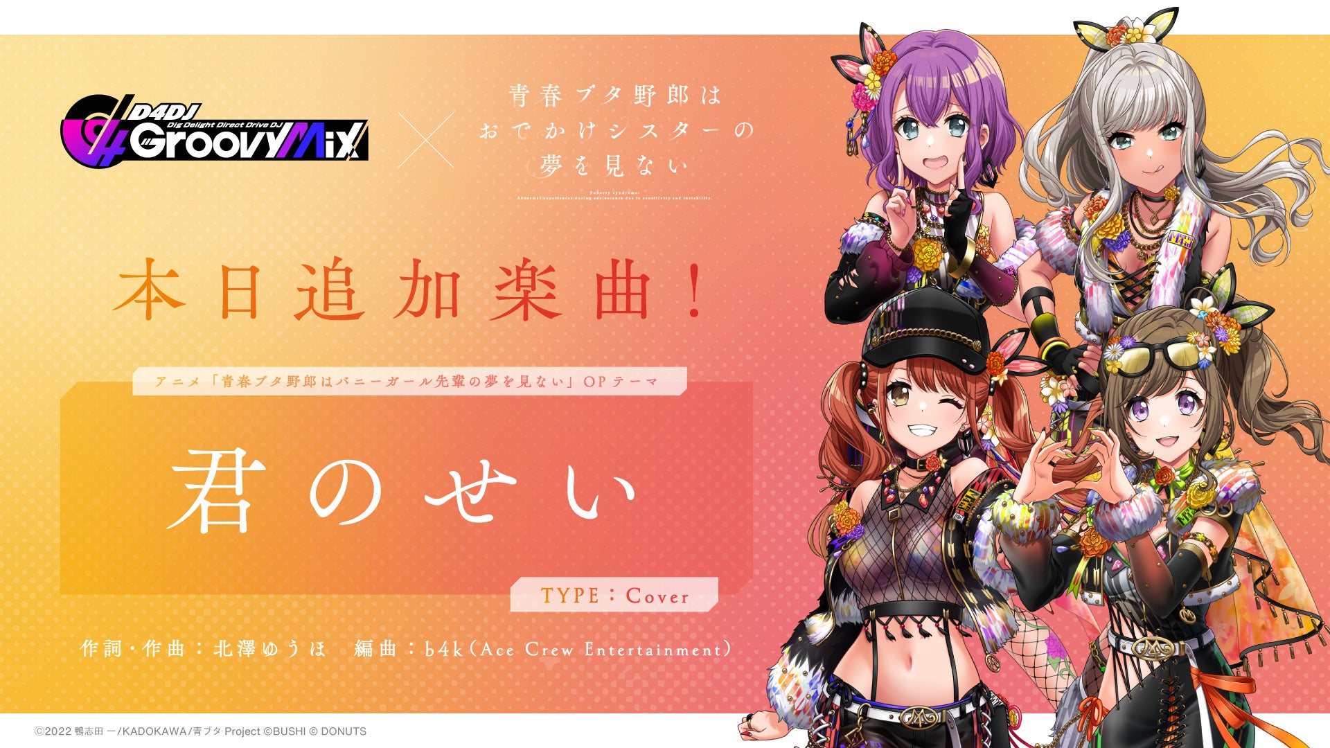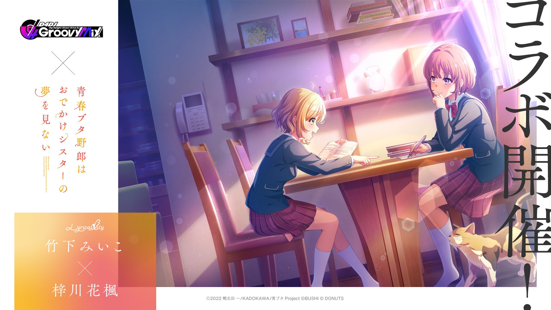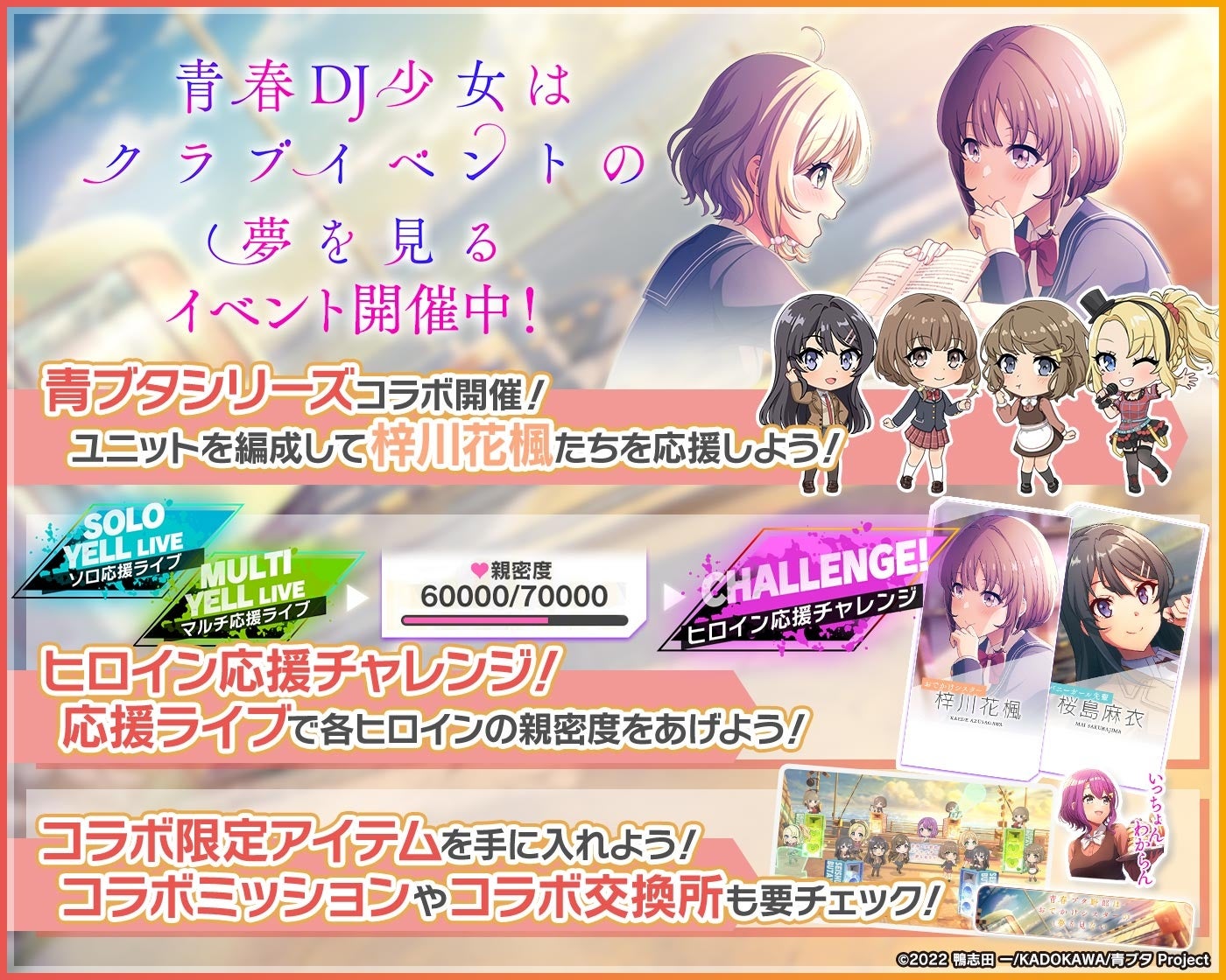 ブシロード、『D4DJ Groovy Mix』で「青春ブタ野郎はおでかけシスターの夢を見ない」コラボイベント&ガチャ「青春DJ少女はクラブイベントの夢を見る」を開催