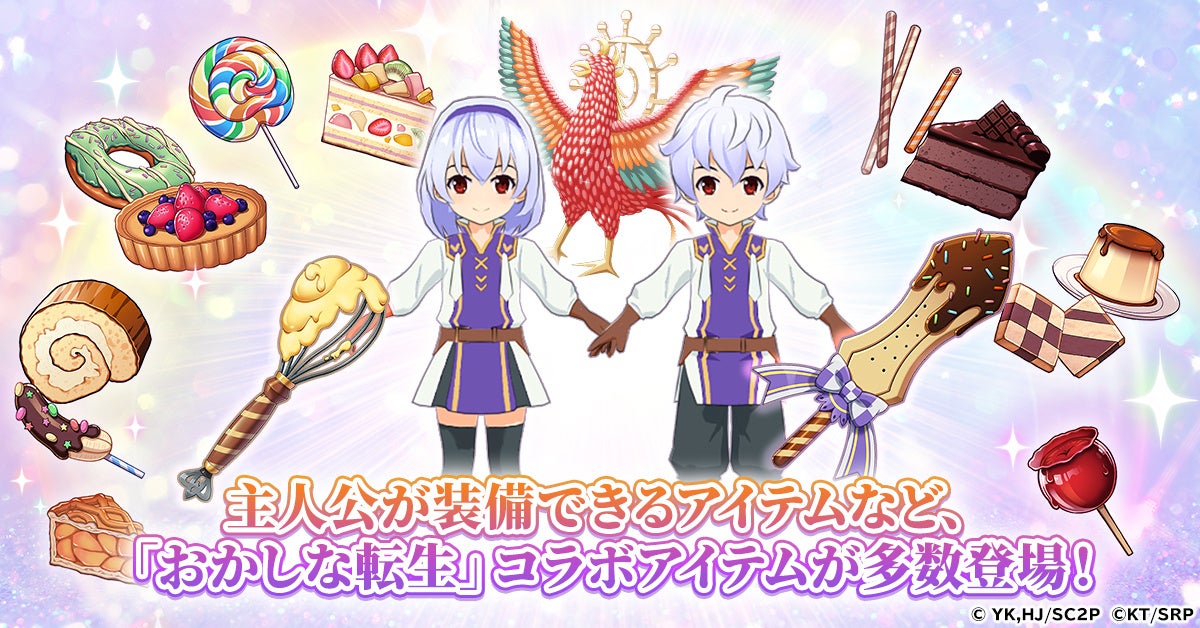 「おかしな転生」から、「ペイストリー」と「リコリス」がゲーム内に登場。戦闘時に仲間キャラとして参戦したり、特殊なスキルを持つ支援キャラとして登場する。チームを編成して戦力を強化しよう!