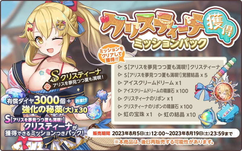 新キャラクター『Sクリスティーナ【アリスを夢見つつ夏も満喫!】』が獲得できるミッションパックを販売!
