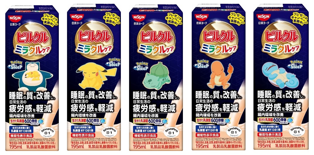 日清ヨークは、スマートフォン向けゲームアプリ『Pokemon Sleep (ポケモンスリープ)』とコラボレーションし、2023年8月13日(日)より「ピルクル ミラクルケアを買ってポケモンと睡眠を楽しもうキャンペーン」を実施する。