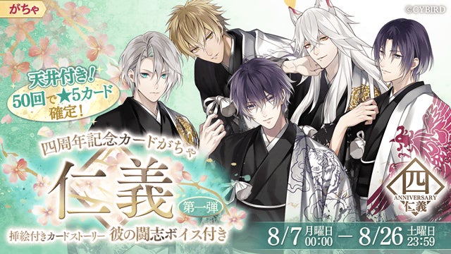サイバードは『イケメン源氏伝 あやかし恋えにし』が、2023年8月20日(日)をもって、サービス開始から4周年を迎えることを発表。これを記念して2023年8月7日(月)~9月30日(土)の期間、アプリ内にて特設ページを公開している。