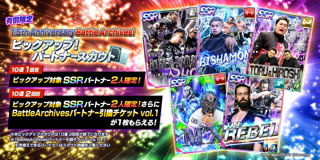 ●新日SSは1.5周年!過去に登場したBattle Archives!のパートナーが出現するピックアップパートナースカウトを開催!