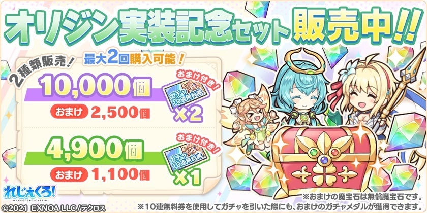 EXNOAは『れじぇくろ!~レジェンド・クローバー~』において、シナリオで活躍した守護者「オリジン」がプレイアブルキャラとして登場することを発表した。さらに彼女の実装を記念した「オリジン実装記念セット」も販売中。