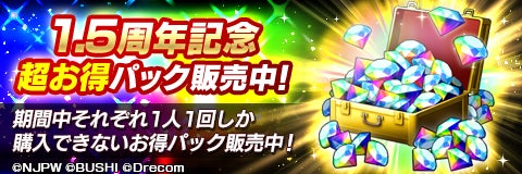 新日SSは、1.5周年を記念して通常より超お得にダイヤが購入できるダイヤお得パックを期間限定にて販売。