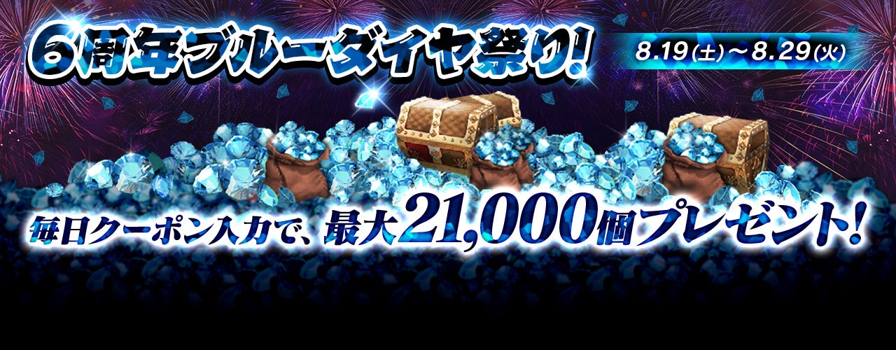 ●6周年ブルーダイヤ祭り! ボーナスクーポンイベント