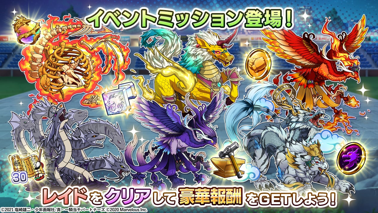 「難易度 兇変のレイドクエストを○回クリアする」や「レイドクエストに参加して○回クリアする」等のミッションをクリアして「老師の極意(30)」、「上級共闘コイン」、「S級刻印」等の豪華アイテムをGETできる!
