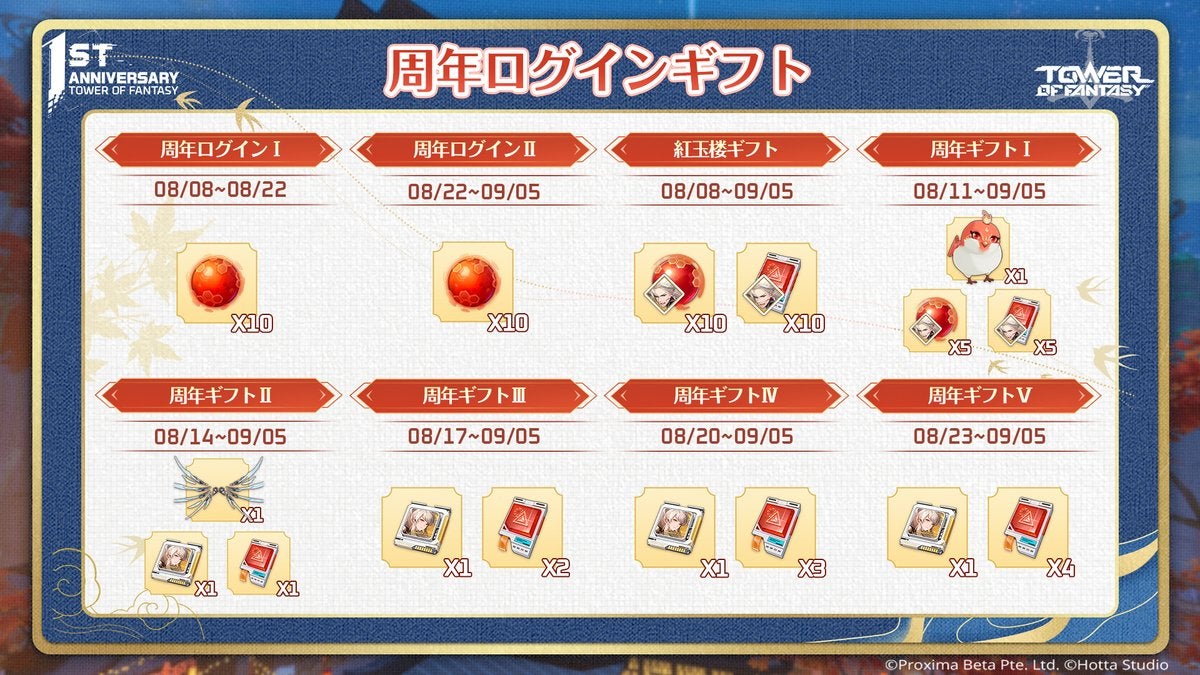⚫︎周年ログインギフトのスケジュール