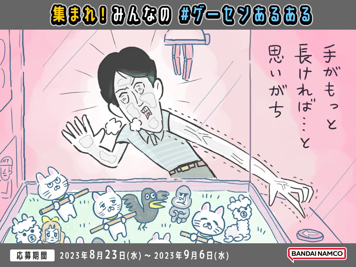 ソーシャルメディア「X(旧Twitter)」にて、ゲームセンターにまつわる“あるある”のエピソード募集キャンペーンを実施します。「#ゲーセンあるある」をつけて投稿されたエピソードのうち、4つを厳選して1コマ漫画にします。さらに副賞としてAmazonギフトカード(1万円分)を贈呈します。1コマ漫画は後日、バンダイナムコアミューズメント公式X(旧Twitter)とキャンペーン特設サイトにて発表します。