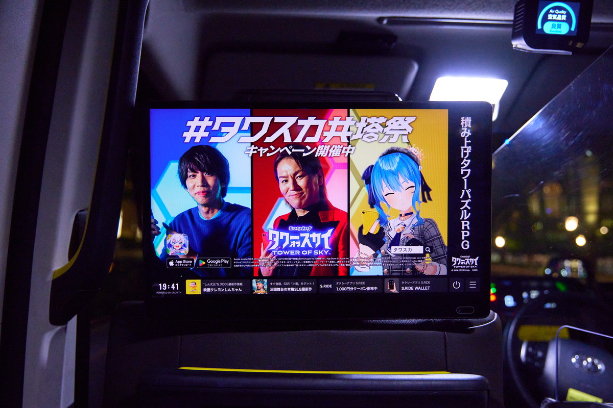また、車内のモニターでは、アンバサダー3名が出演するWEB CMや、アンバサダーが「タワスカ」に挑戦した動画を放映し、これまで「タワスカ」に触れたことがない方にも、「タワスカ」の面白さを伝える。