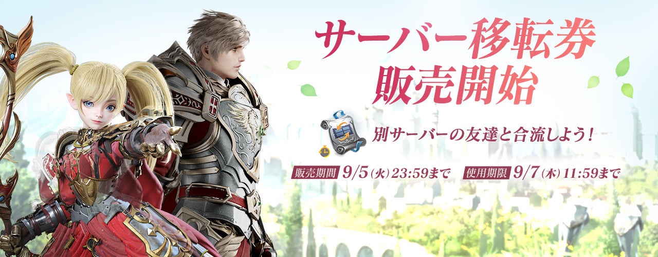 本日より、キャラクターの「サーバー移転券」を期間限定で発売。