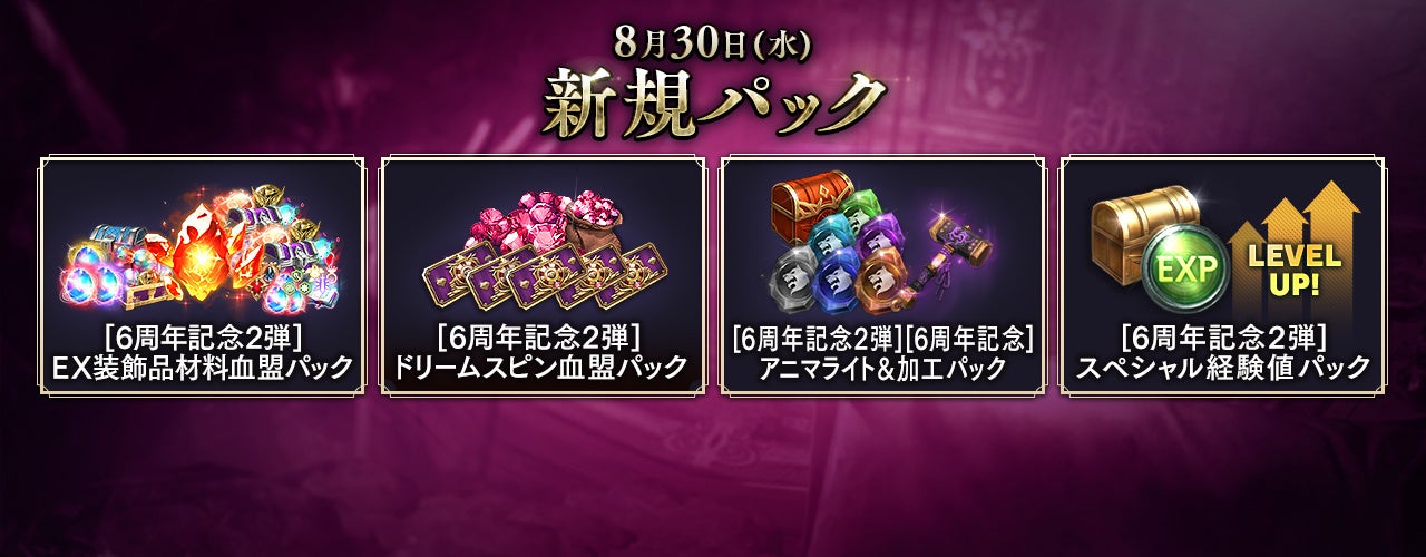 ◆4種の血盟パックや6周年記念アニマライトが獲得できるパックが登場