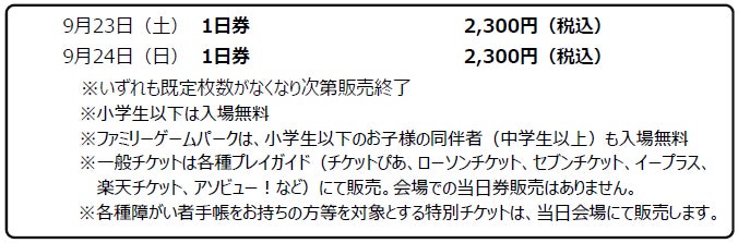 一般来場者向けチケット販売のご案内(小学生以下は無料)