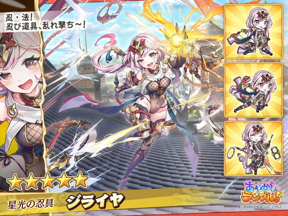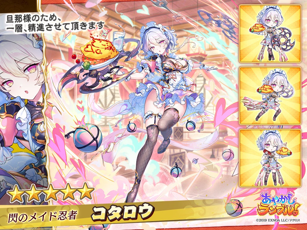 EXNOA、『あやかしランブル!』に「★5 ジライヤ」「★5 コタロウ」登場 逢魔襲来イベント「夜に疾る!萌えキュンメイド忍法帖 ~愛込めは忍びの印結び~」開催