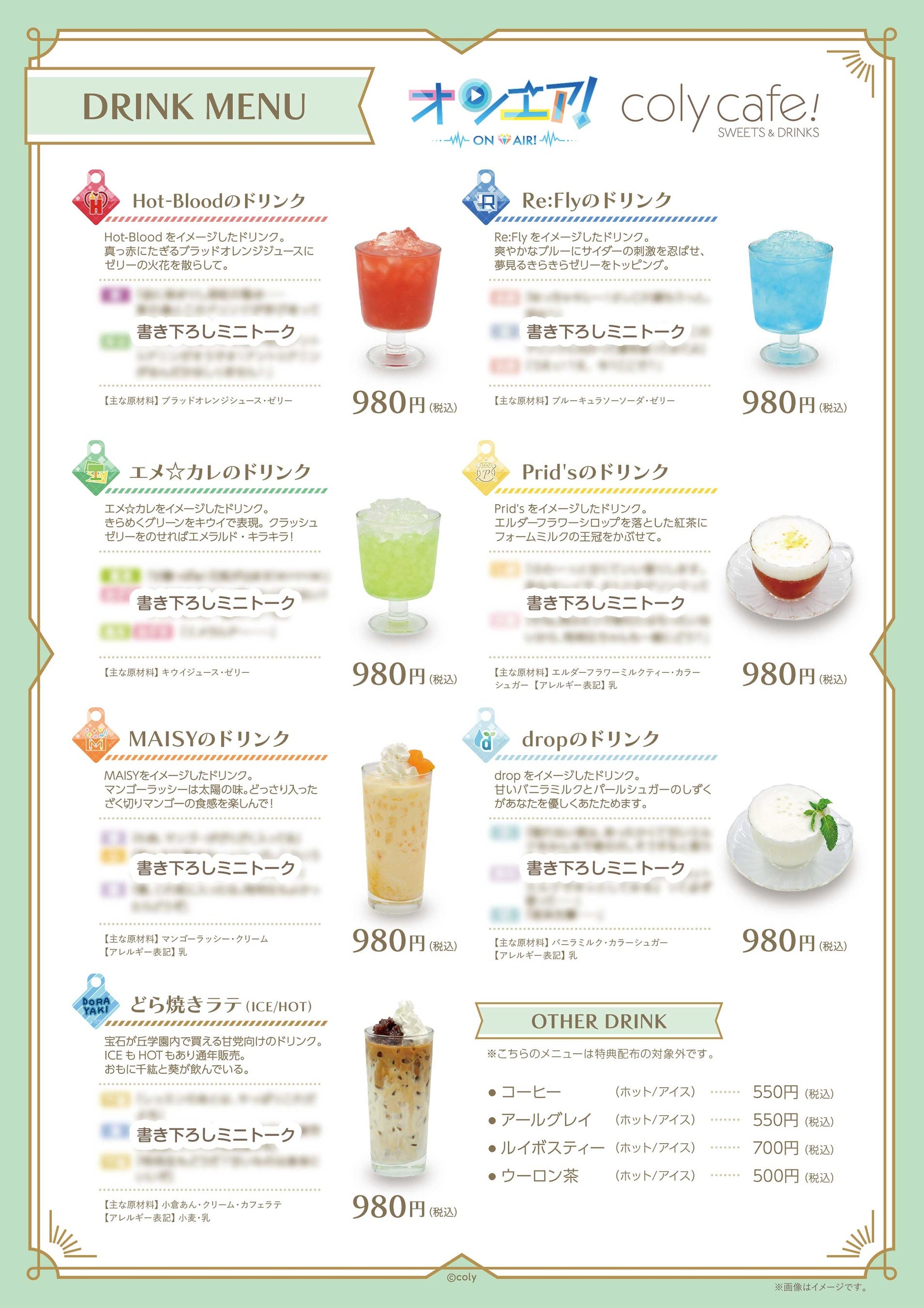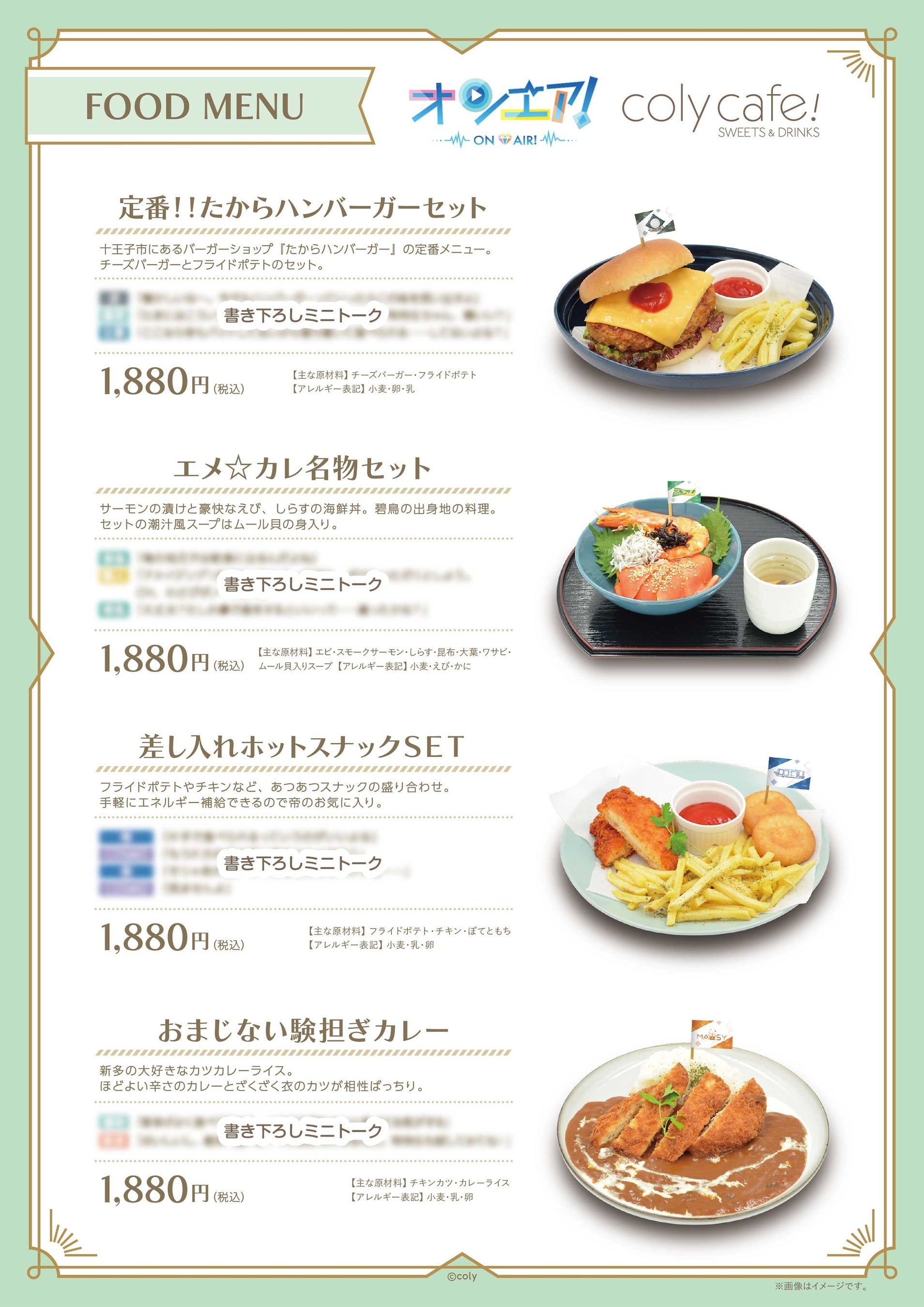 ※メニューは『オンエア!』5th Anniversary in coly cafe!コラボメニューと同様になります。