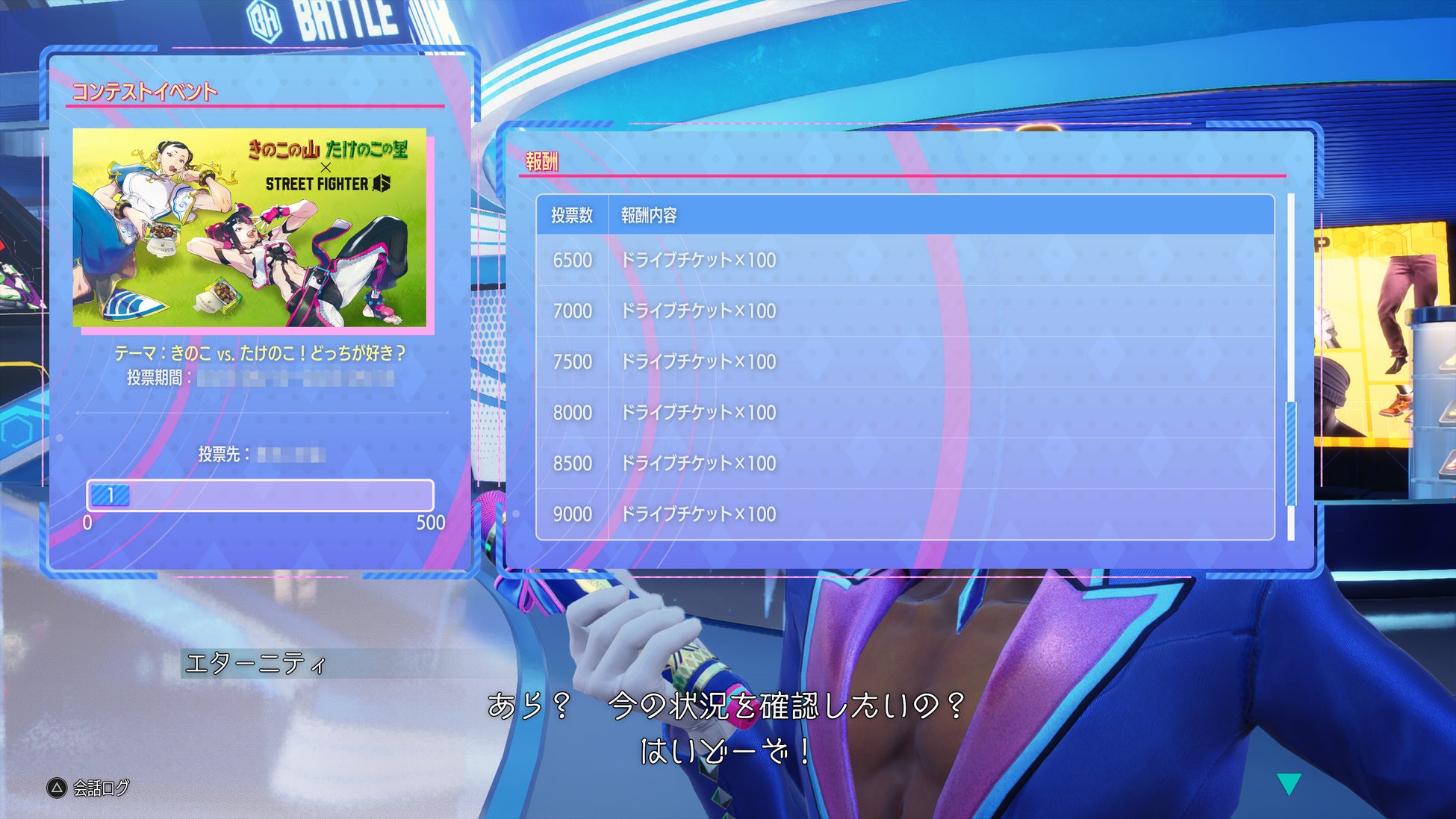 「ストリートファイター」シリーズ最新作『ストリートファイター6』にて、チョコスナック菓子ブランド「株式会社 明治」とのゲーム内コンテストイベント「きのこ vs. たけのこ!どっち派?」が本日9月12日(火)より開催! バトルハブ内で「きのこの山」と「たけのこの里」のどちらが好きかを投票し、プレイヤー全員が1位に輝いた投票先の「特別なアバターアイテム」を入手できるぞ! 投票期間が限られているので、是非バトルハブへアクセスして投票しよう!