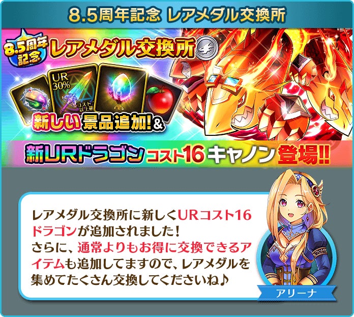 5.レアメダル交換所にURコスト16新ドラゴン登場&景品追加