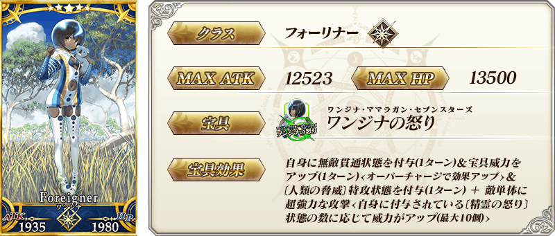 さらに、同期間、期間限定サーヴァント「★5(SSR)ワンジナ」が新登場する「ワンジナ・ワールドツアー!ピックアップ召喚」を開催。