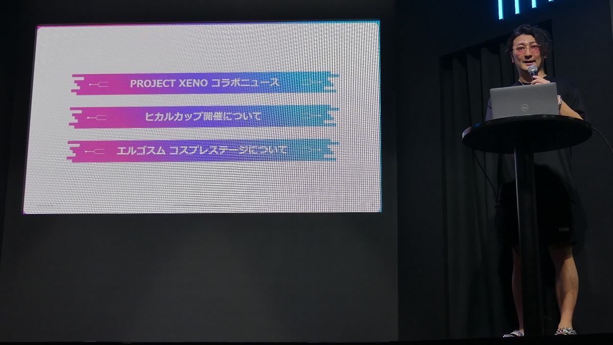 その他、賞金総額2000万円の公式全国e-Sports大会「ヒカルカップ」を10月から開催すること、同社が発表している3タイトルの内の1つである『エルゴスム』のコスプレステージが同ブースで行われること(23日14時30分~えなこ出演、24日11時30分~篠崎こころ・みゃこ出演)が発表された。
