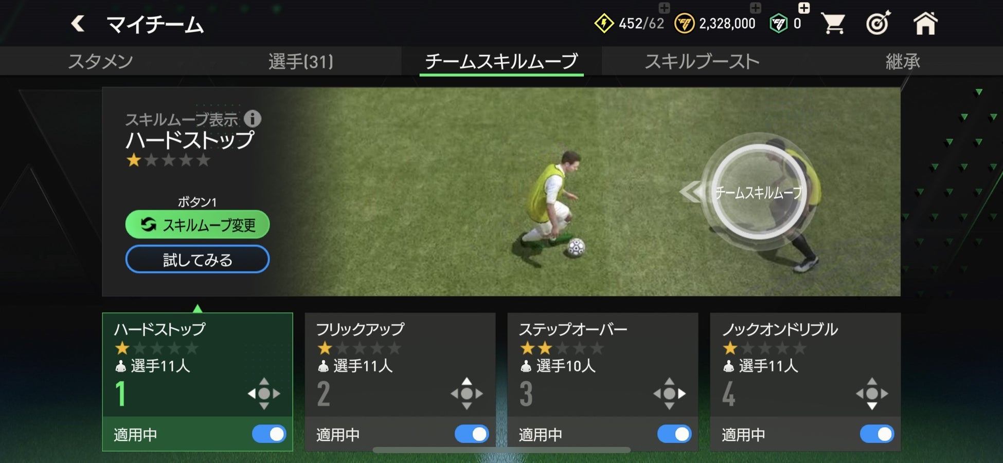 ゴールキーパーが防ぎづらい強力なシュート「パワーシュート」と、シュートやクロスを遮断しやすい個人技「ハードタックル」、空間を活用し、長くドリブルをする「ノックオンドリブル」を新たな個人技として追加いたしました。