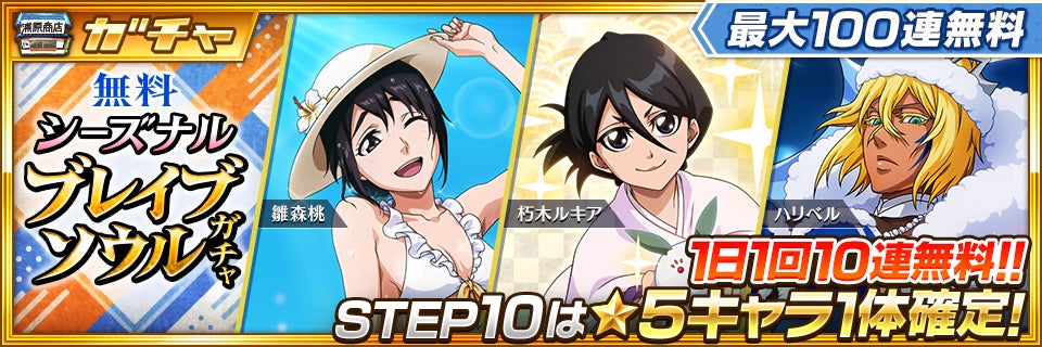 期間中、最大100連を無料で引ける「無料シーズナルブレイブソウルガチャ」を実施!
