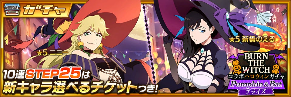 BURN THE WITCHコラボハロウィンプライズガチャ―Pumpkin&Bat―の登場を記念してPVキャンペーンを開催!