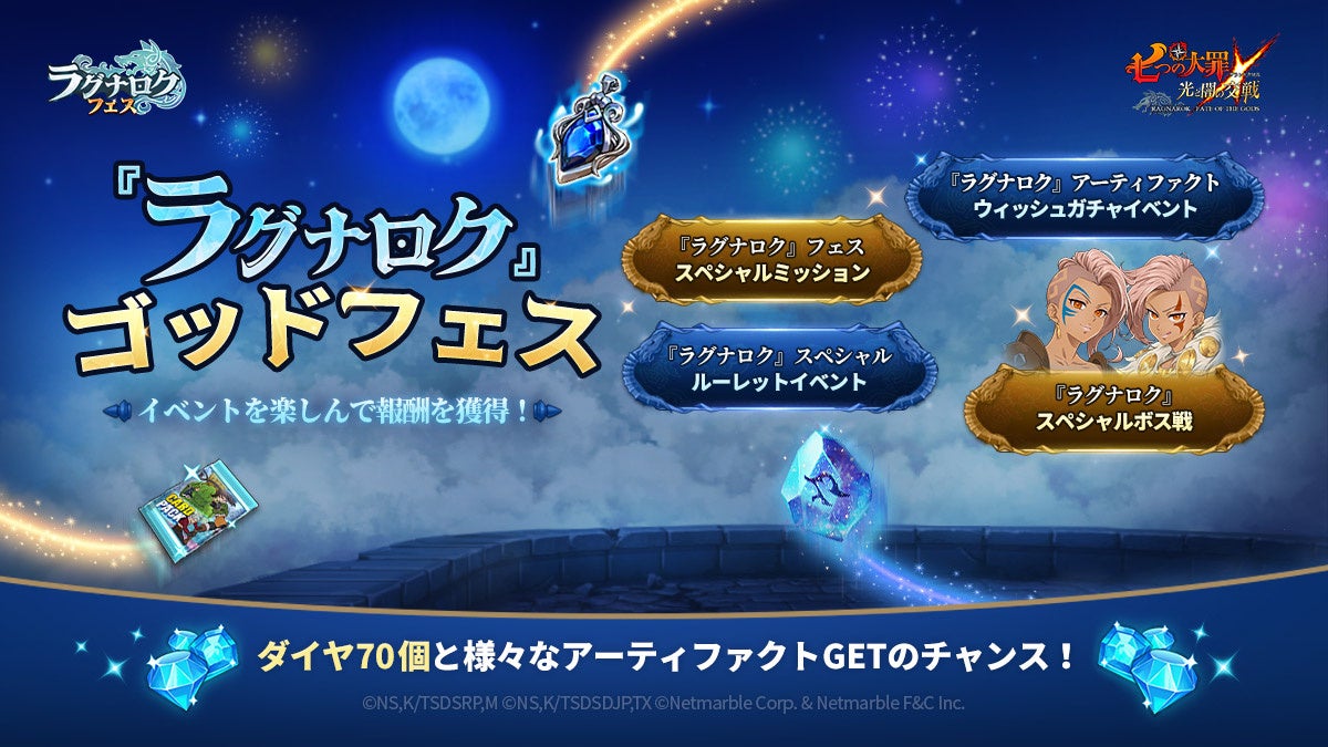 ネットマーブルは、スマートフォン向けシネマティックアドベンチャーRPG『七つの大罪 ~光と闇の交戦(ひかりとやみのグランドクロス)~』(略称:グラクロ)において、9月27日(水)より、オリジナルシリーズ『Ragnarok, Fate of the Gods』(以下、ラグナロク)初のフェスイベントを開催いたします。