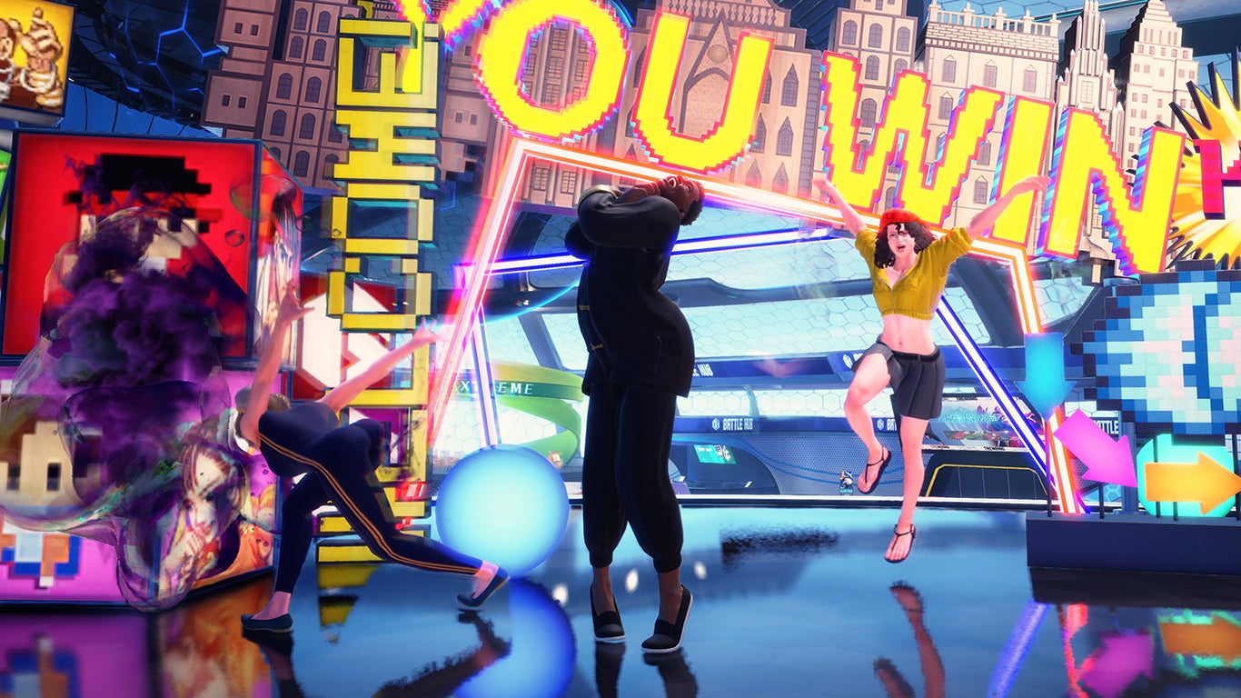 「バトルハブ」 では、「A.K.I.」から習得した新技やエモートを世界中のファイターに見せつけよう。